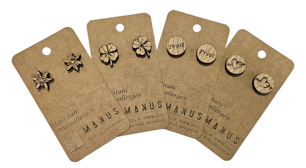 Sie wollen Ihr eigenes Motiv auf ihren neuen Ohrringen aus Massivholz, gerne, senden Sie uns über das Kontaktformular eine Beschreibung bzw. ein Logo/Bild. Wir kontaktieren Sie. C
